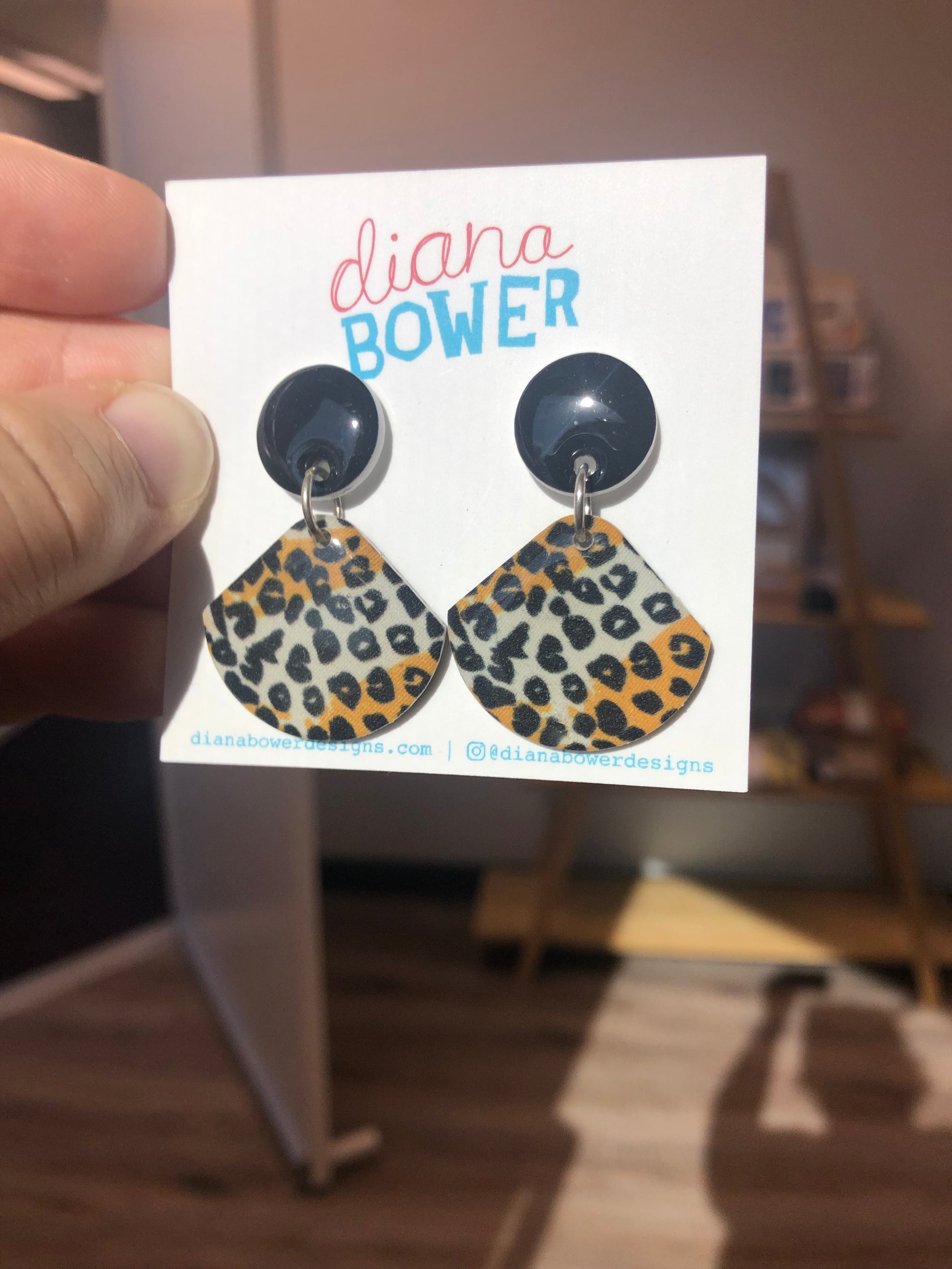 Diana Bower Designs - Earrings - Small Fan - Animal Print
