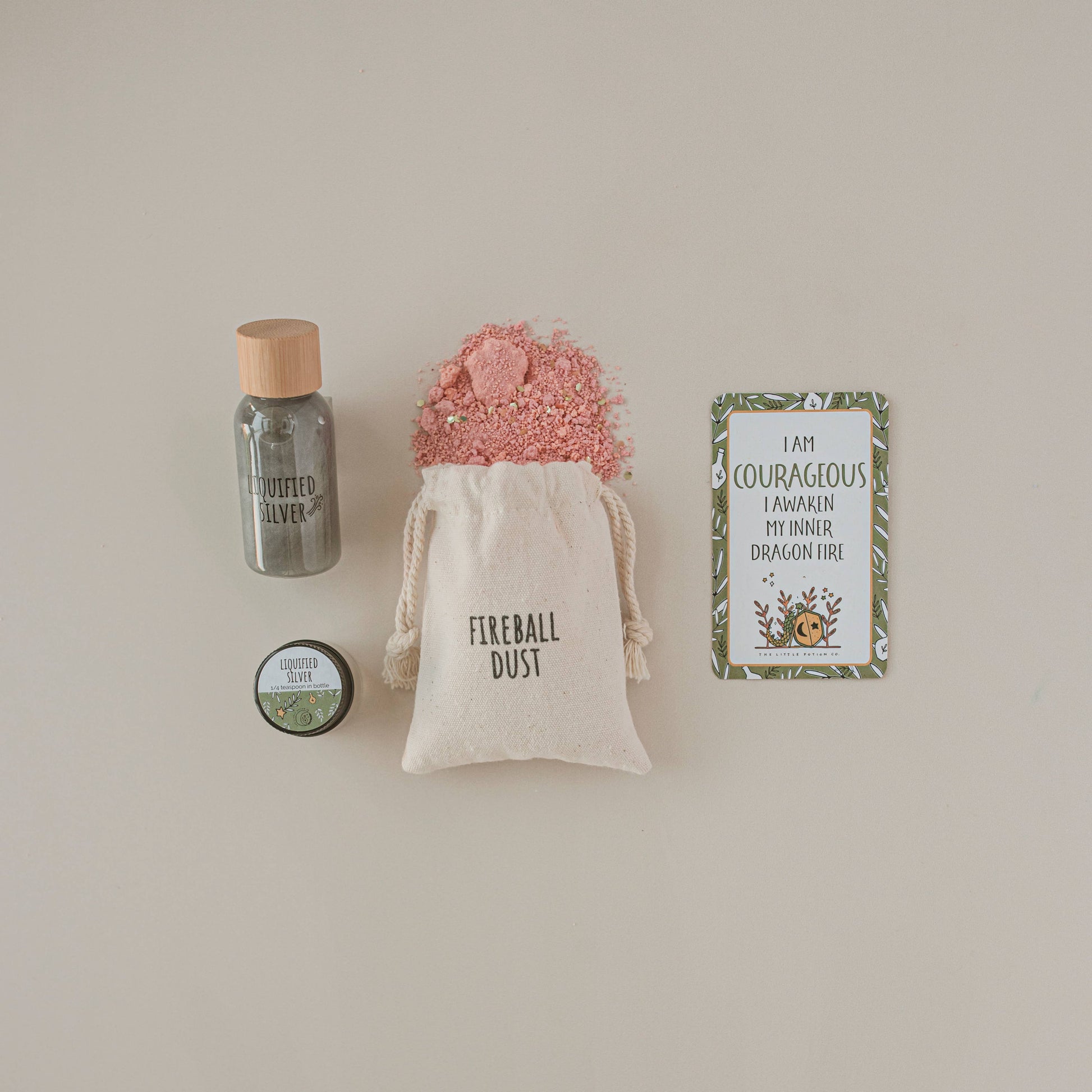 A mini potion kit about dragons and knights. Mix it up and watch it fizz to make potions about being courageous and awakening your inner dragon. Our Mini kits are the perfect introduction to our mindful kits. They are for those seeking to start on their magical journey and help to promote imaginative play. These mini kits allow children to explore the wonders of magic and are perfect for learning how to express themselves.