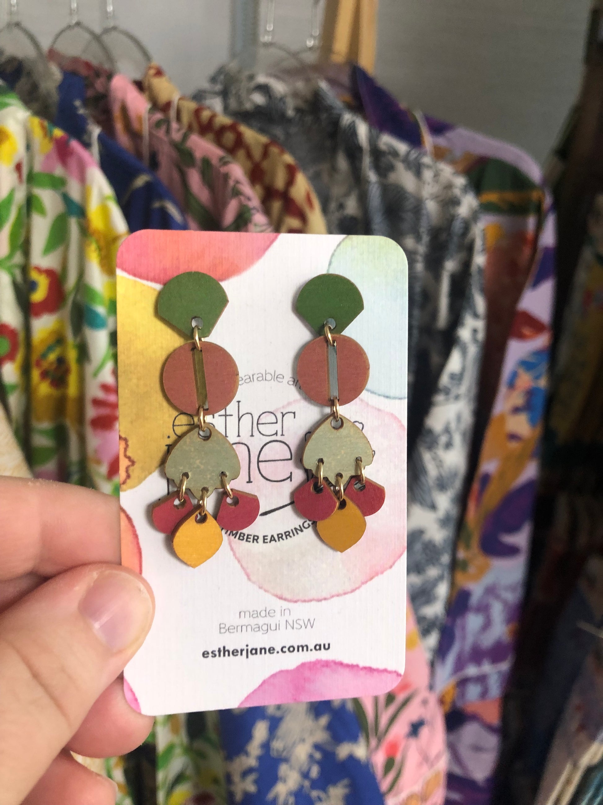 Esther Jane - Long Dangle Timber Earrings - multi colour and shape