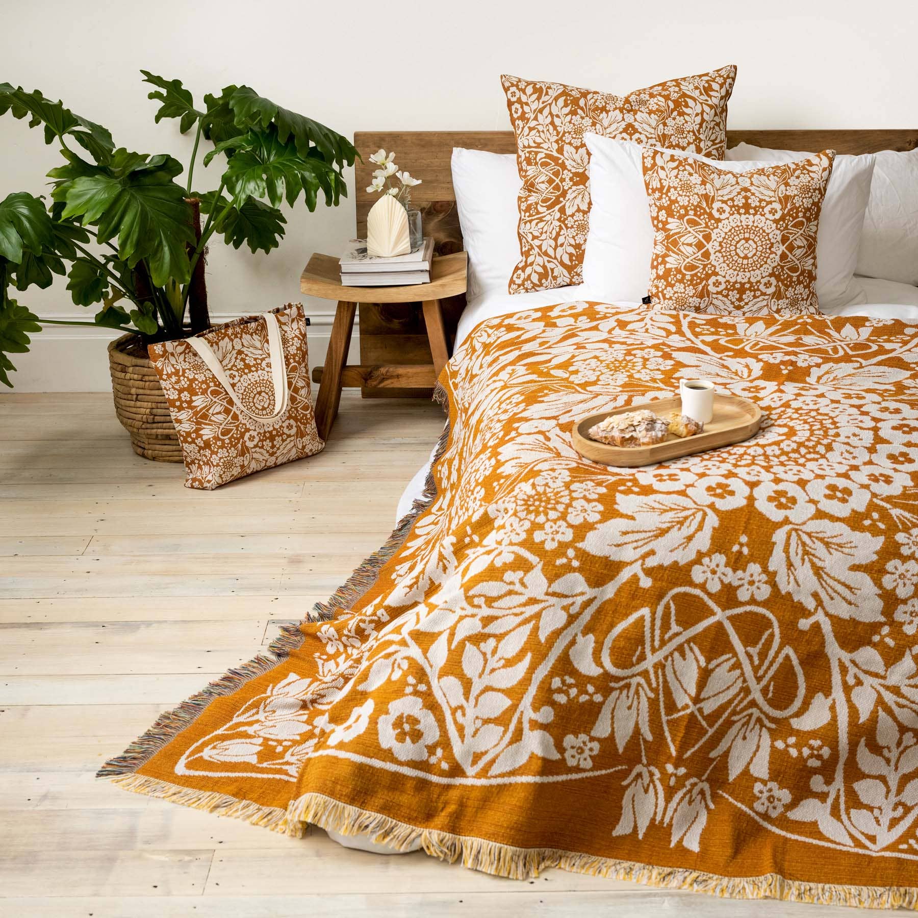 Golden Slumbers is inspired by how Art Nouveau modernised design with its signature ornate patterns from the late 19th century. Weaving in the romantic sweetness of boho lace, it will illuminate any space. Hendeer’s gorgeous line of tote bags are woven with our sustainable blend of cotton and recycled polyester. Quality-stitched with handles made from cotton twill, our totes are made for the long run. Wear it to brunch with friends or to the beach with all your essentials.