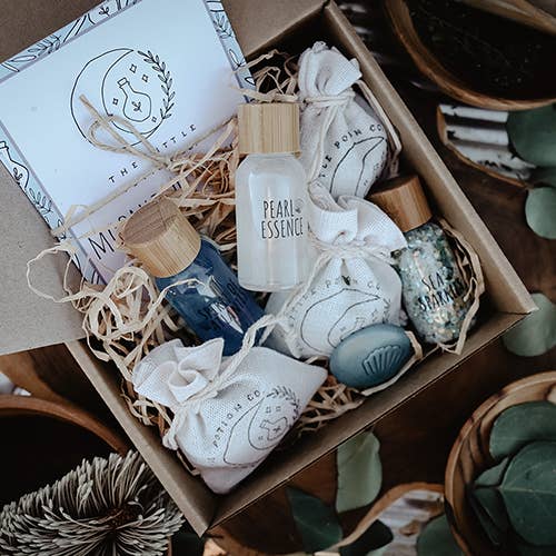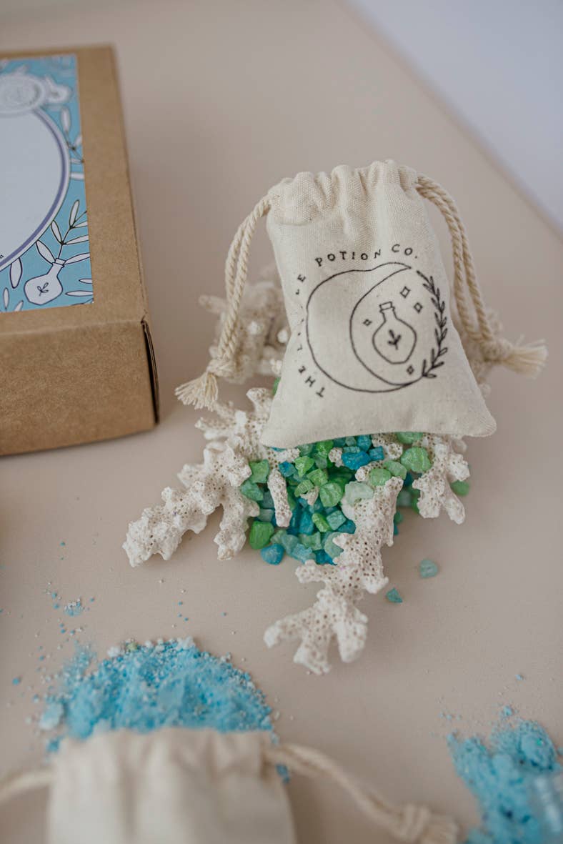 This mystical potion kit is for those who love the magic of the sea. For those who have always wanted to swim like merfolk and have the confidence that Mermaids have. These potions will help you find your inner mermaid strength and help you in times of need. Potion Recipe Cards include the following spells: A fish out of water - a potion for confidence in finding our voice Spirit of a Mermaid - a potion for taking control of fearful thoughts Calming the Storm - make a calming bottle to quiet a stormy mind Just keep Swimming - a potion for resilience and strength