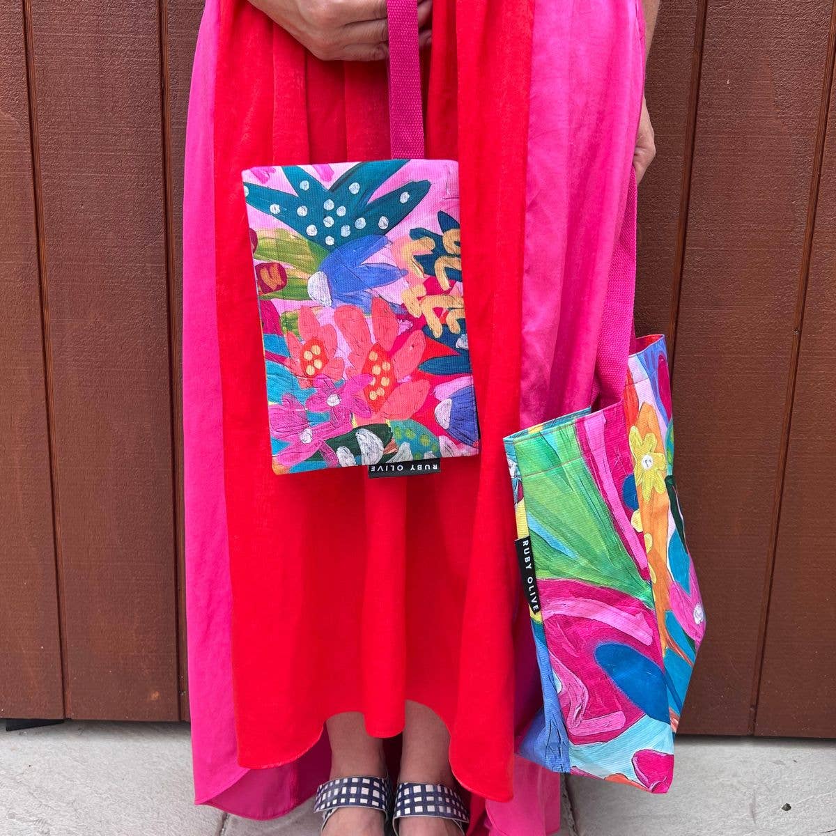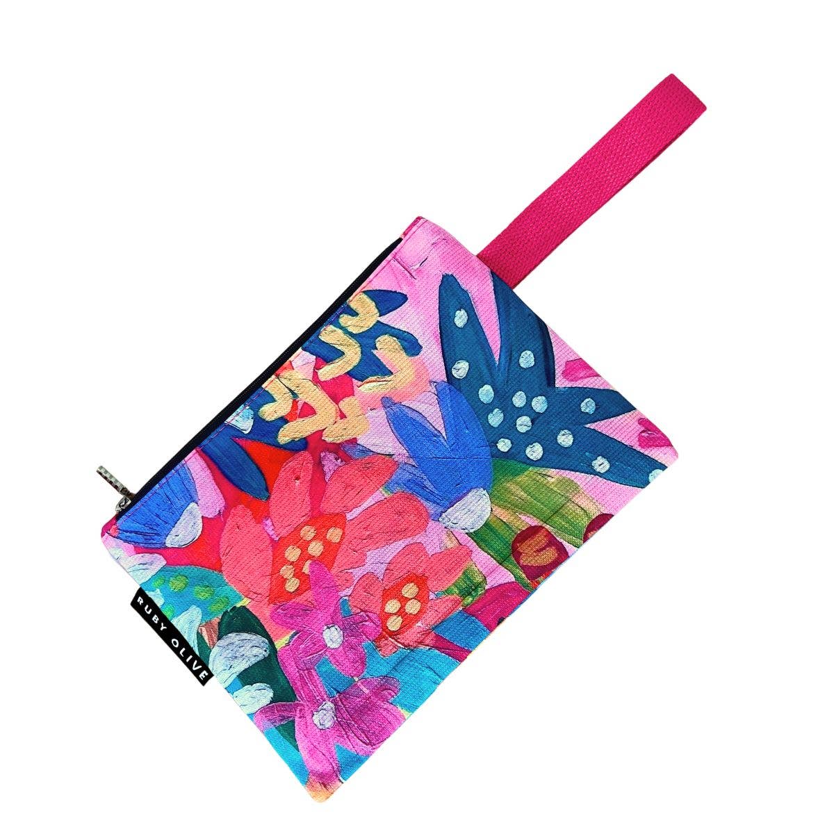 Introducing the Flower Joy Pouch, a handy little pouch made of recycled water bottles! Featuring stunning artwork by an Australian female artist, Steph Chapman, this stylish and sustainable pouch is lined for extra protection and comes with its own wrist strap. Perfect for keys, phone, makeup, bits and bobs. Ready for your next adventure?